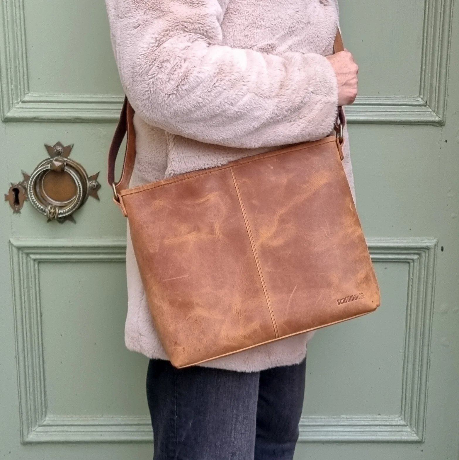 Scaramanga handcrafts each leather bag and uses semi-vegetable tanned leather; which may result in variances in texture, colour and shading and natural lines and marks on the leather, which may be individual to each bag. There may be differences in the colour of the lining, style and construction of each bag compared to the bags shown on the website.